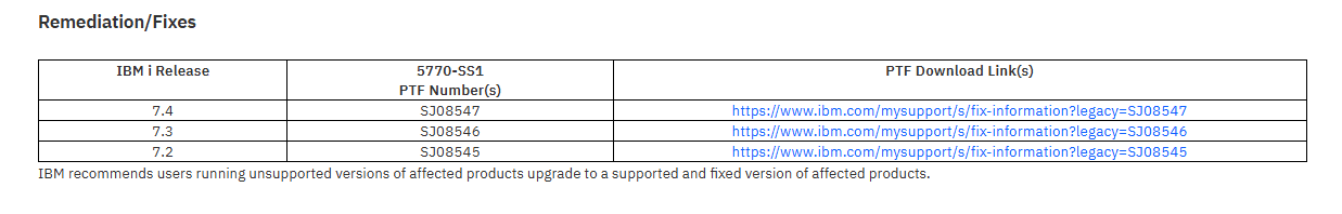 Même si elle n’impacte pas directement la confidentialité ou l’intégrité des données, elle peut dégrader fortement la disponibilité des services IBM i exposés à des entrées non fiables.